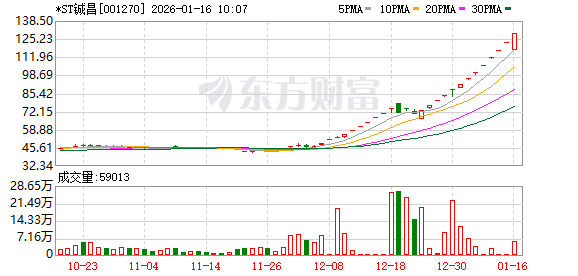 *ST铖昌上演“地天板”行情,股价从跌停拉升至涨停,截至09:33,该股成交量572.80万股,成交额6.81亿元,振幅达10.00%,换手率2.81%,涨停板封单金额为1.52亿元。(数据宝)